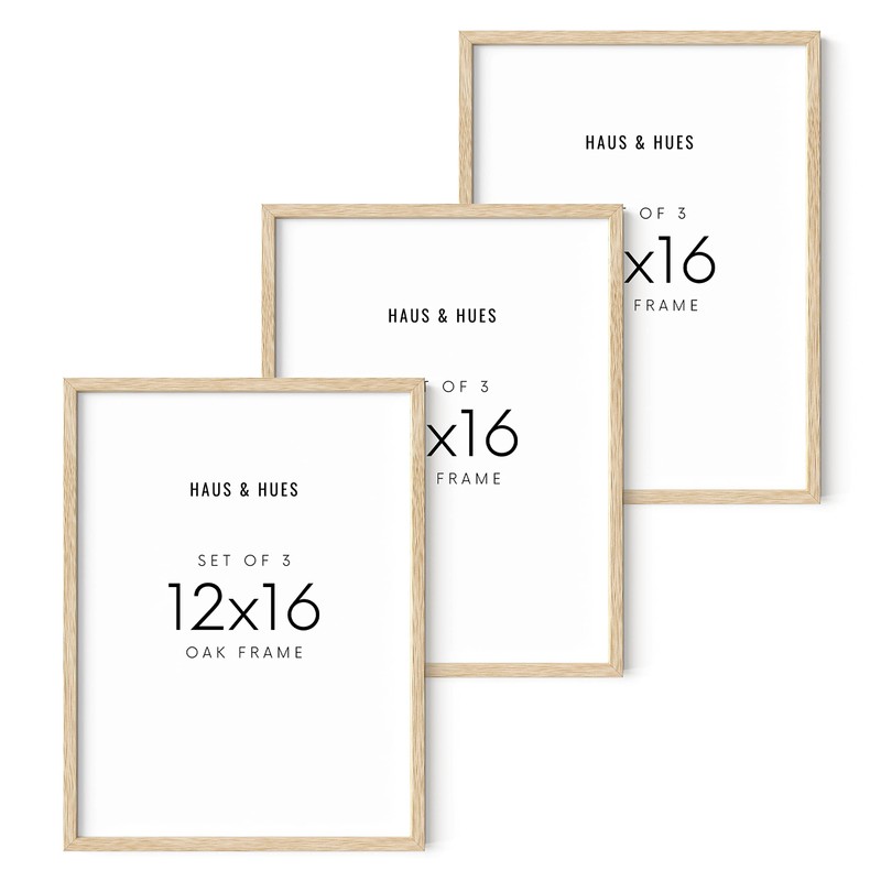 - 🌞 VERSATILE 12x16 NATURAL OAK WOOD FRAMES: Keep your memories fresh with our 12x16 picture frame set. These wood print frames can be used not only for pictures, but is also perfect for displaying drawings, diplomas, artworks, and Haus and Hues art prints! The neutral tones are easy on the eyes, which makes these frames a match for so many types of homes. Whether your home is rustic, modern or anything in between, you will find a place in your home where you can display our 12''x16'' frame set