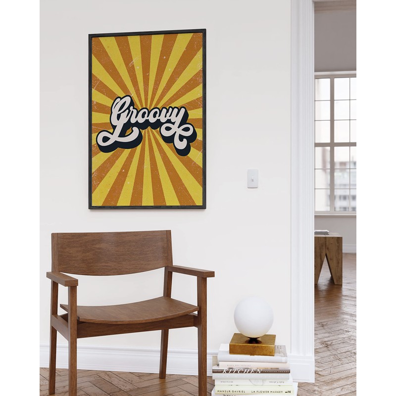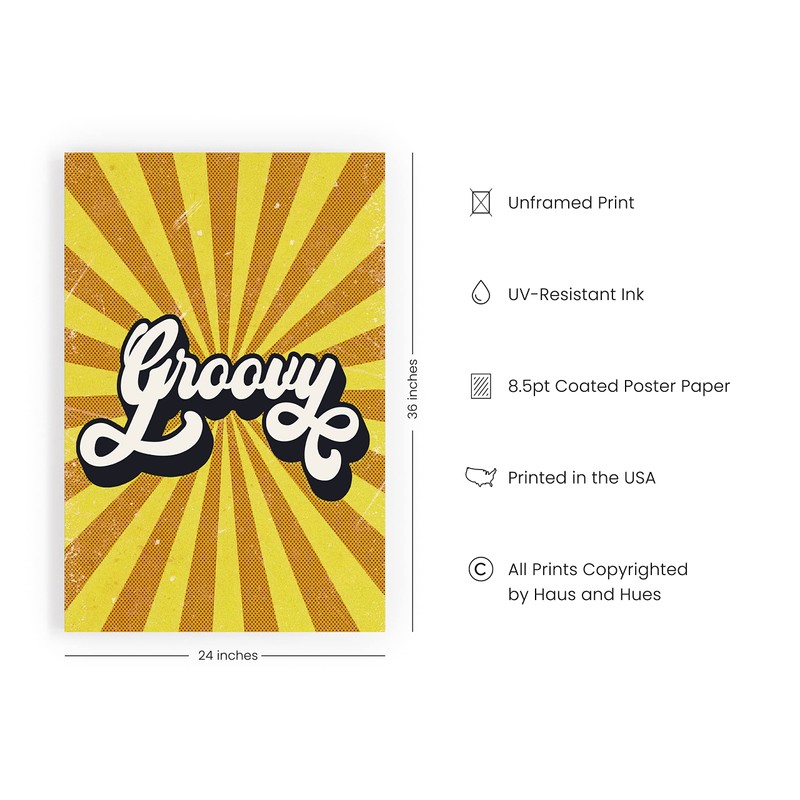 HAUS AND HUES Groovy Hippie Poster - Retro 70s Indie Aesthetic Wall Art for Bedroom & Dorm (Beige Frame, 24x36)