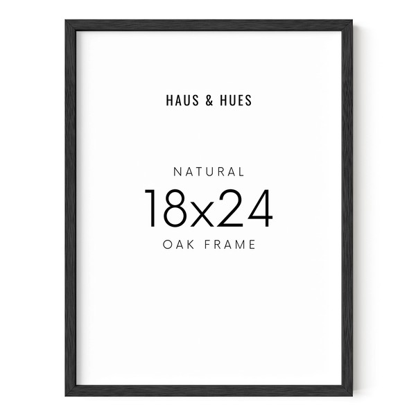 HAUS AND HUES Natural Black Oak 18 x 24 Picture Frame - 18x24 Poster Frame Black - 18 by 24 Frame, 18 x 24 Wooden Frame, 18 x 24 Poster Frame, 24x18 Poster Frame (Black Oak Frame)