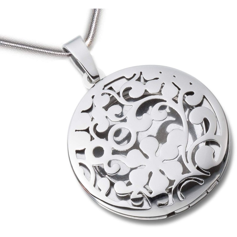 Haus der Herzen Medallion Ornament Flower Decoration Round High Gloss Stainless Steel for 1 Photo/Picture + Case, Stainless Steel