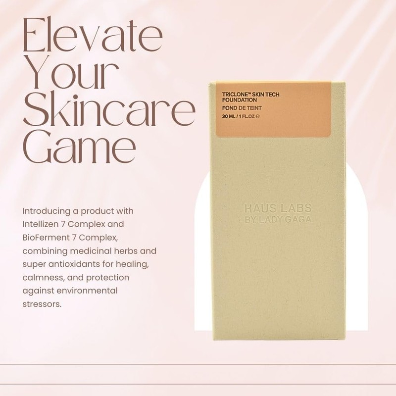 • REDNESS REDUCTION: Harnessing the power of fermented arnica, HAUS LABS BY LADY GAGA Triclone Skin Tech Medium Coverage Foundation visibly reduces redness and irritation, offering a soothing solution for sensitive skin concerns.