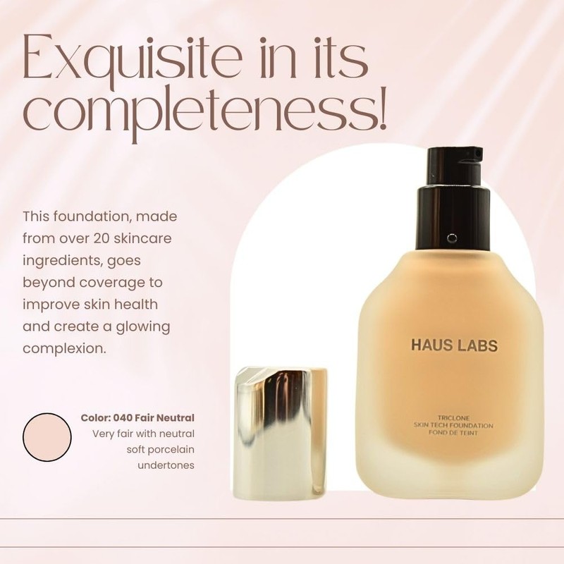 Haus Labs Triclone Skin Tech Medium Coverage Foundation with Fermented Arnica - 040 Fair Neutral - Very Fair with Neutral Soft Porcelain Undertones