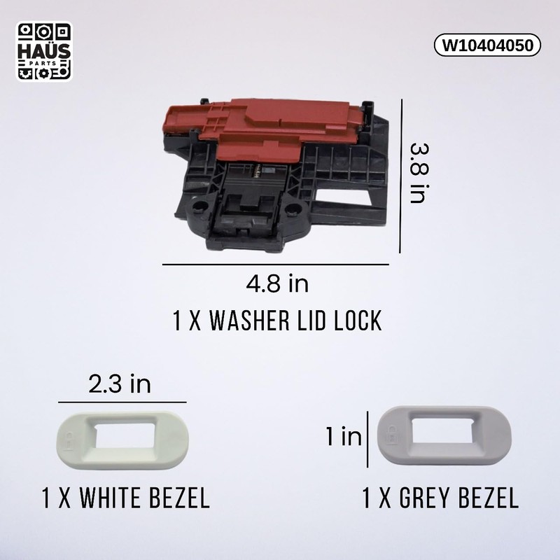 - Complete Lock Kit: Haüs Parts W10404050 Washer Lid Lock Switch Assembly Includes 4-wire lid lock switch, white & gray bezels, and installation guide—everything needed for a fast and effective washer repair