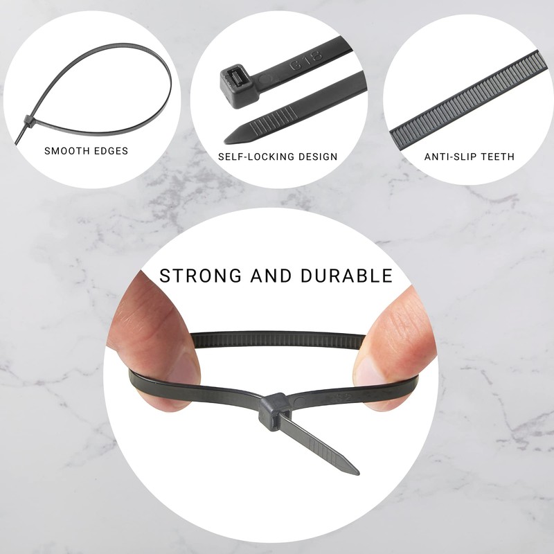 - ✅ SIMPLE TO USE – These strong, durable cable ties have a self-locking mechanism that provides security and reliability. Easily tighten the cable tie to the desired length and the self-locking teeth will keep the zip tie tightly in place. They can be used for DIY, business, and commercial uses. This can include organising office electrical wires, securing a suitcase or bike accessories, hanging lights or banners, supporting plants in the garden, or securing objects for transportation.