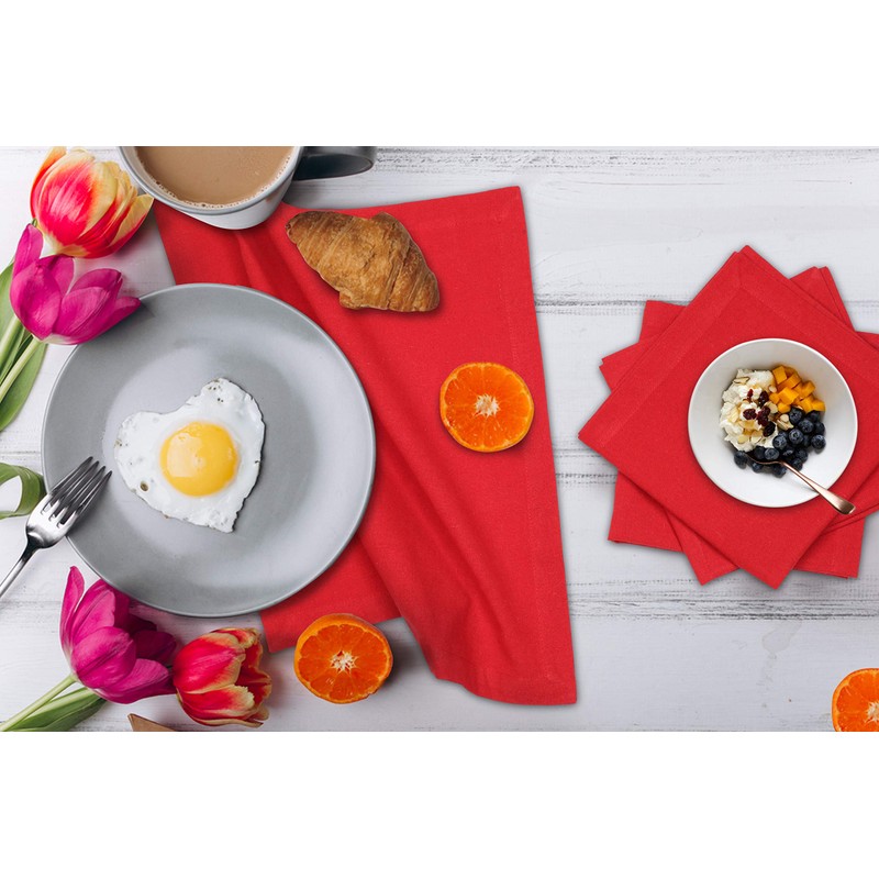 Hausattire Reusable Napkins Cloth Washable 100% Cotton 18x18 Inch Dinner Napkins|Table Napkins| Valentine's Day Gift For Her| Spring Easter Decor |Set of 12 Cloth Napkins for Home Banquet Wedding |Red