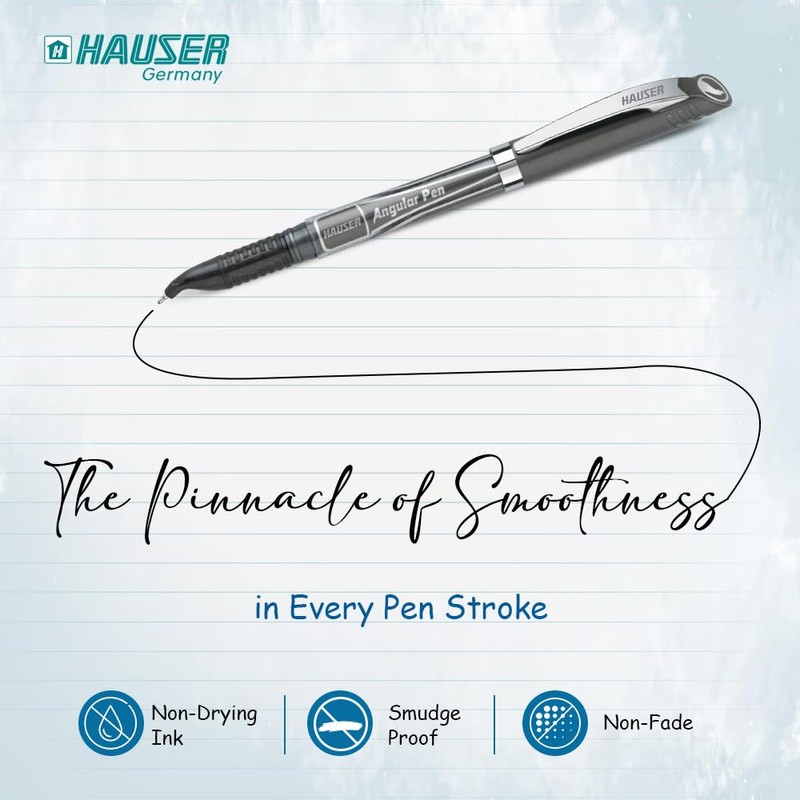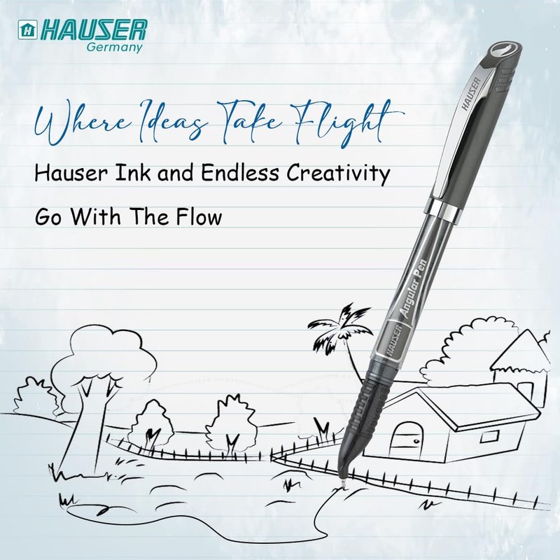 HAUSER Angular Pen - Precision 0.7mm Tip | Ergonomic Bent Design for Enhanced Writing Visibility | Ideal for Left-Handed Writers | Sleek Metallic Clip | Black Ink Fine Point Pen