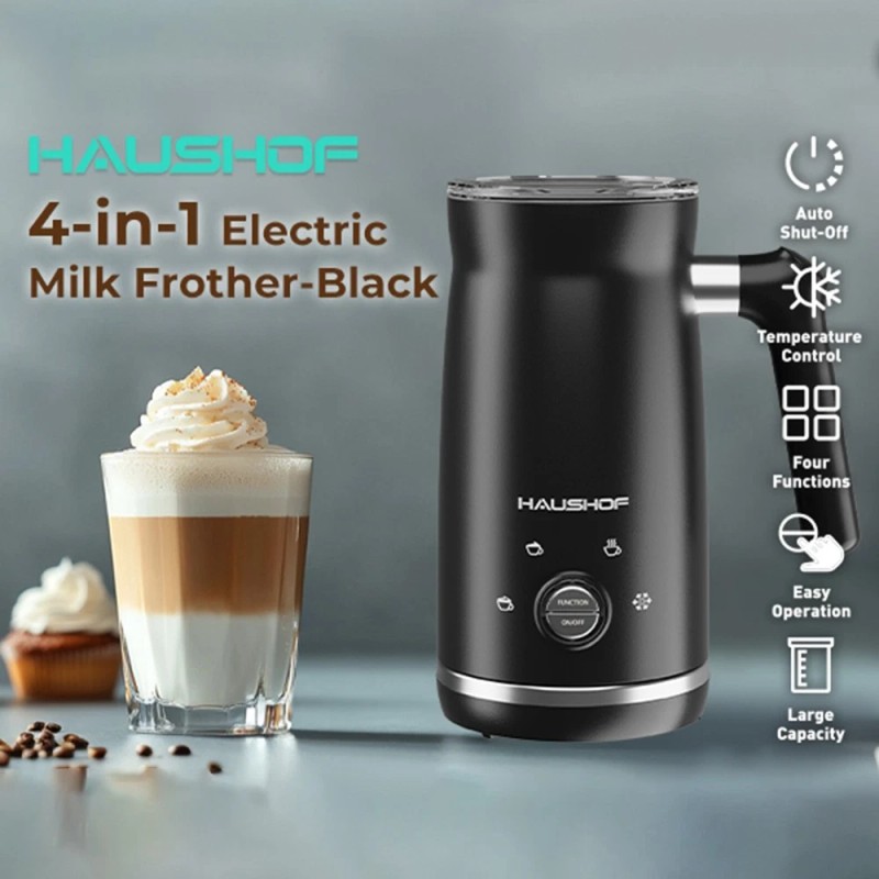 HAUSHOF 4-in-1 Electric Milk Frother Steamers Large Capacity Automatic Warm Cold