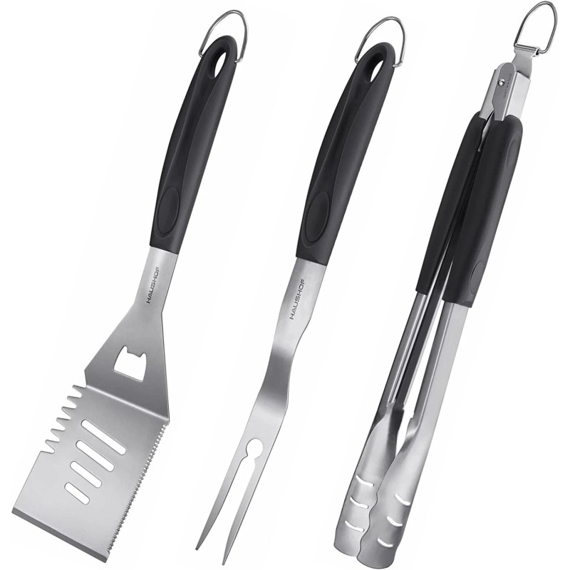 HAUSHOF Large Grill AccessoryHeavy Duty BBQ Set Barbecue Utensils Tool Kit 3PCS