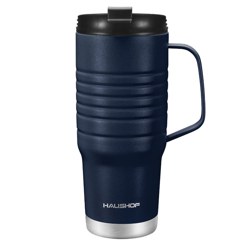 HAUSHOF - Taza de viaje de 24 onzas con asa, de acero inoxidable aislada al aspiradora, taza de viaje para café, doble pared con tapa a prueba de fugas, sin BPA