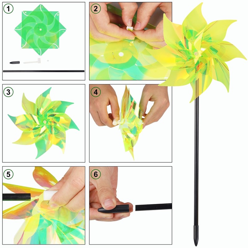 2. The pinwheels repellent reflective you receive are un-assembled, please assemble them when received.