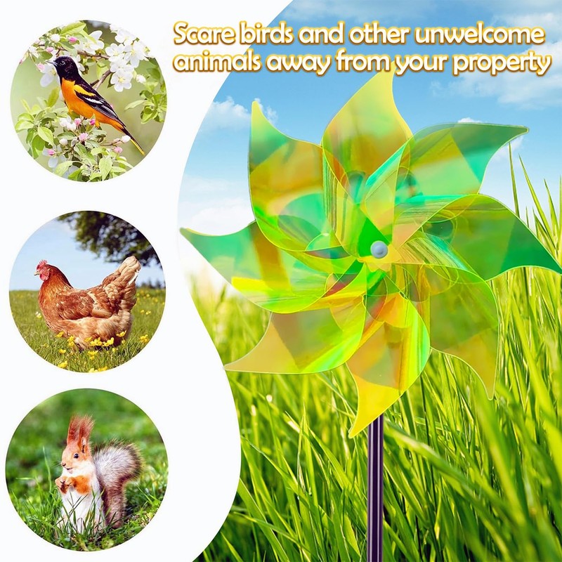 - Humanitarian Solutions: These yellow Mylar pinwheel will reflecting colorful, they are made of safe, non-toxic plastic material that will not harm the environment and animals. Instead of frightening and harming birds, our bird repellent pinwheel device humanely scares them away by reflecting visual light