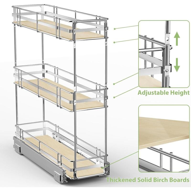 This spice organizer for cabinet has a first-class ball bearing mechanism and a fully extendable slider, which slides smoothly and quietly.