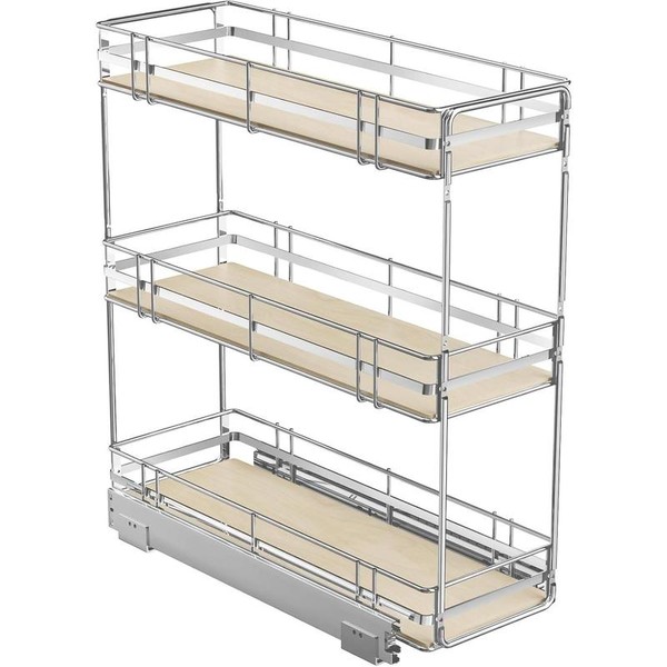 Hausvita 3-Tier Pull Out Cabinet Organizer Spice Rack for Narrow Cabinet 6" W x 20½" D, Slide Out Wood Shelves Storage for Kitchen - Size: 8" W x 20½" D
