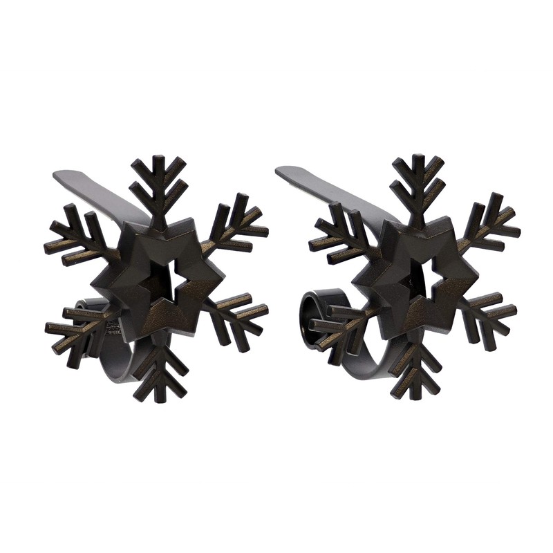 Haute Decor MantleClip Stocking Holders with Removable ZINC Alloy Holiday Icons (2-Pack Snowflake, Black) - Christmas Stocking Hanger for Mantels up to 3 inches Thick