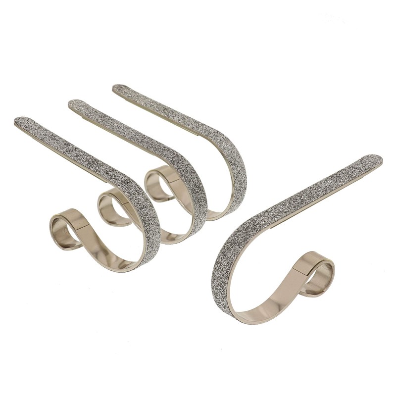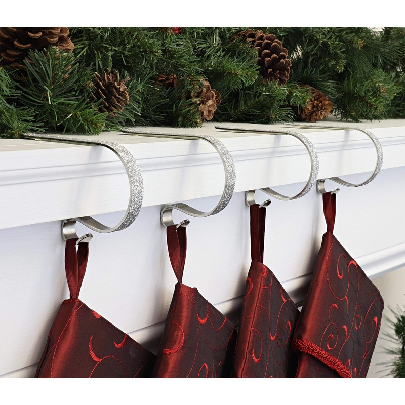 Haute Decor The Original MantleClip® Stocking Holder- 4 Pack (Glitter Silver) - Hang Christmas Stockings Safely and Securely from Mantels Up to 3 Inches Thick