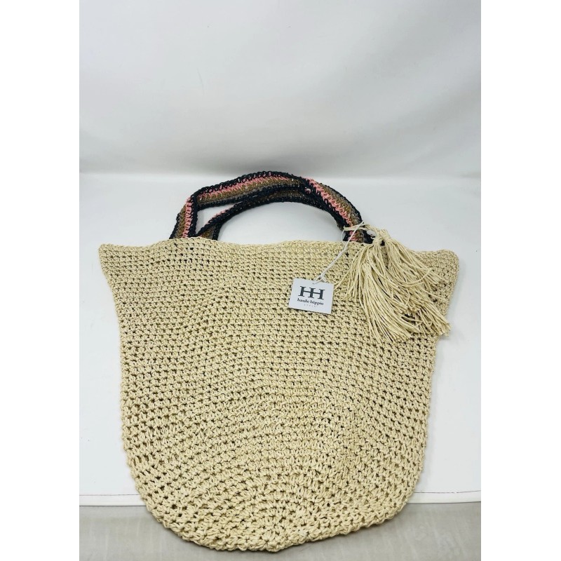 NWT Haute Hippie Tote Beach Bag Straw Woven Raffia Double Handle 15x19. Condition is New with tags. Shipped with USPS First Class.