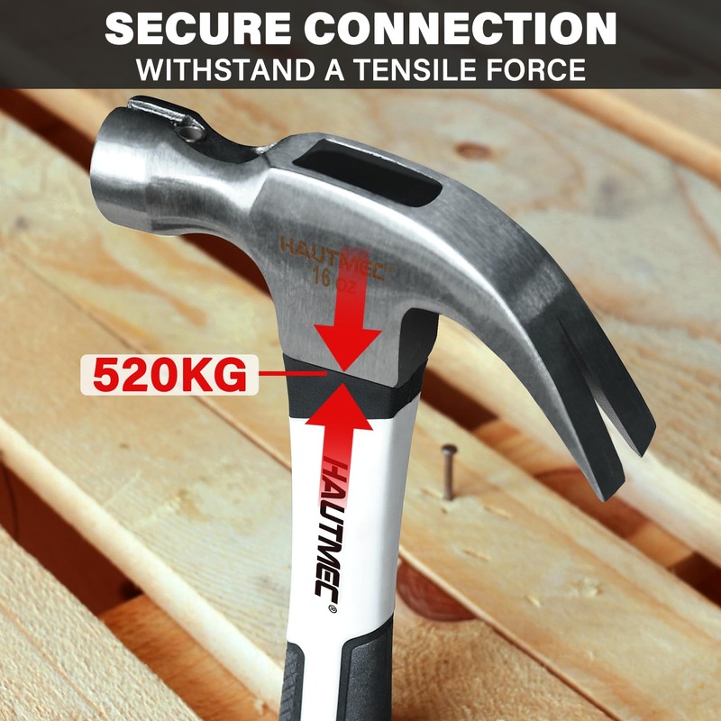HAUTMEC 16 oz Claw Hammer, Drop Forged Claw Hammers with Magnetic Nail Holder and Firberglass Handle, Curved Jaw of Nail Puller, Smooth Face, HTMAM25003-UK