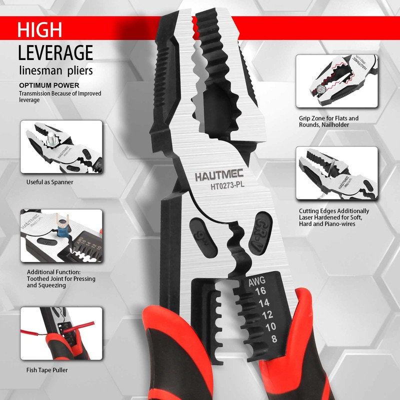 HAUTMEC 9" (22.86 CM) Linesman Pliers,High Leverage Combination Pliers 4 in 1 Multifunctional Heavy Duty Lineman Tools HT0273-PL