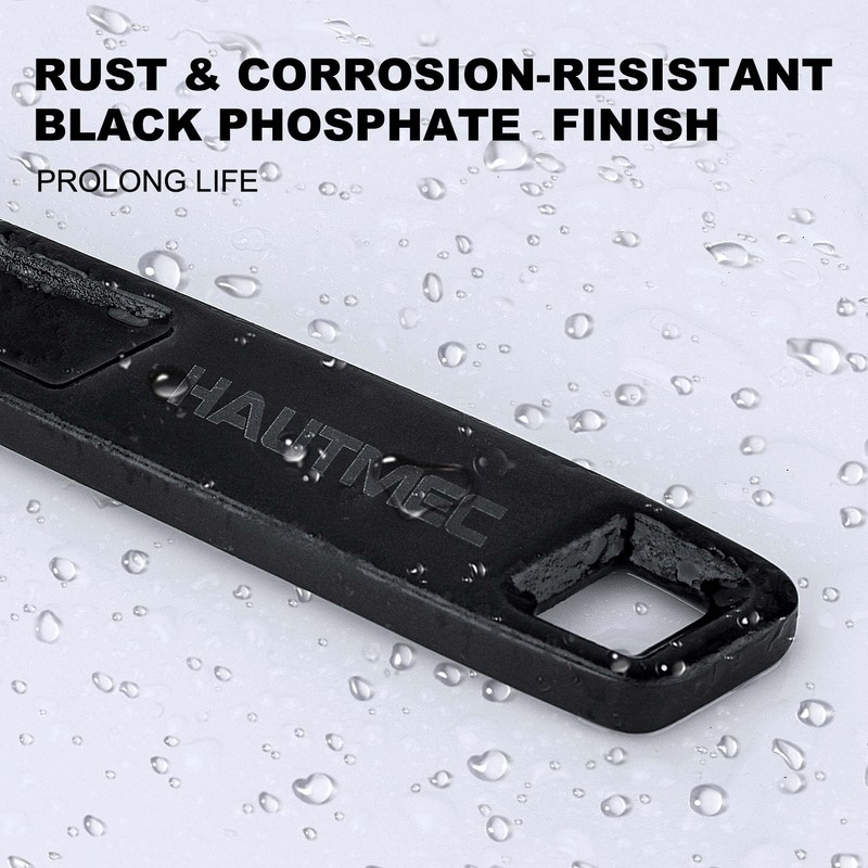 - Durability& Longevity: The materials of wrench determines their durability. Our wrench is made of premium Chrome Vanadium Steel with heat-treatment and drop-forged construction for durability and toughness. Corrosion-resistant black oxide finish prolongs its life.