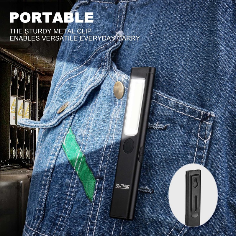 - The weatherproof HAUTMEC COB offers a full-featured take on the pocket-ready inspection light, small rechargeable flashlight prized for its circular ray of flawless light.