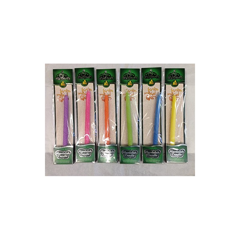 - Wax Havdala Candle Twisted Style Assorted Colors 12" 6 Pack