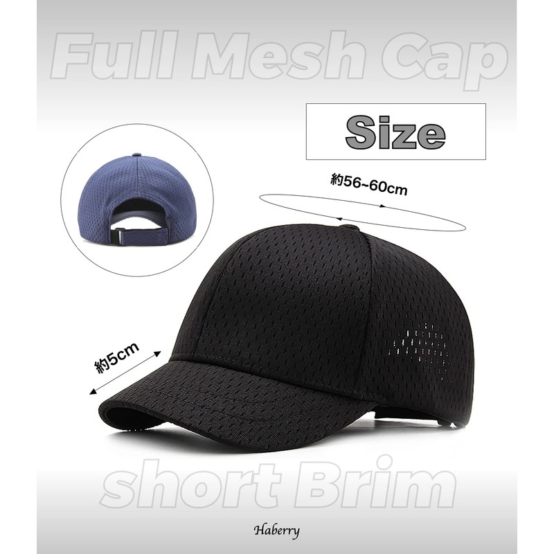 - Solid Full Mesh Short Brim Cap Cool cap with short brim Fabric is mesh material. Lightweight and breathable. The soft material fits well on the head and is comfortable to wear. Adjustable Velcro on the back