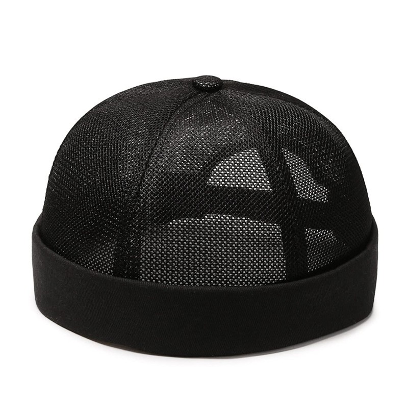 Havely Men's Mesh Roll Cap, No Brim, Baseball Umpire, Solid Color, Watch, Black