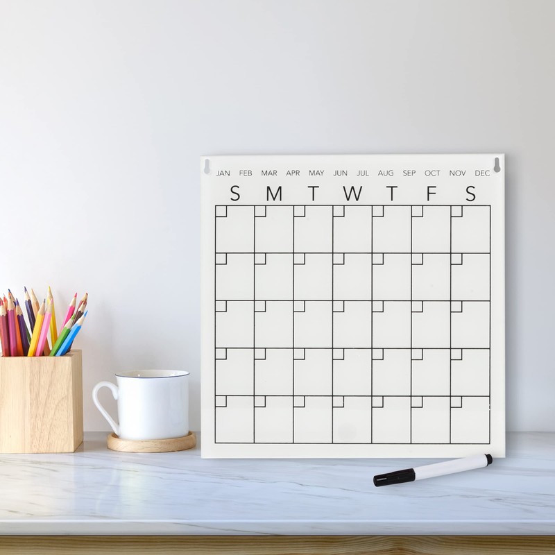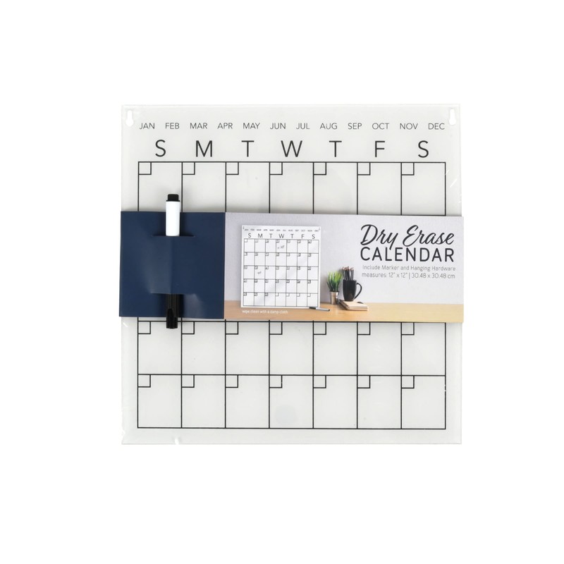 Haven Home Decor 12" x 12" Reusable Wall Hanging Acrylic Calendar with Dry Erase Marker, White (01-HG-37229)