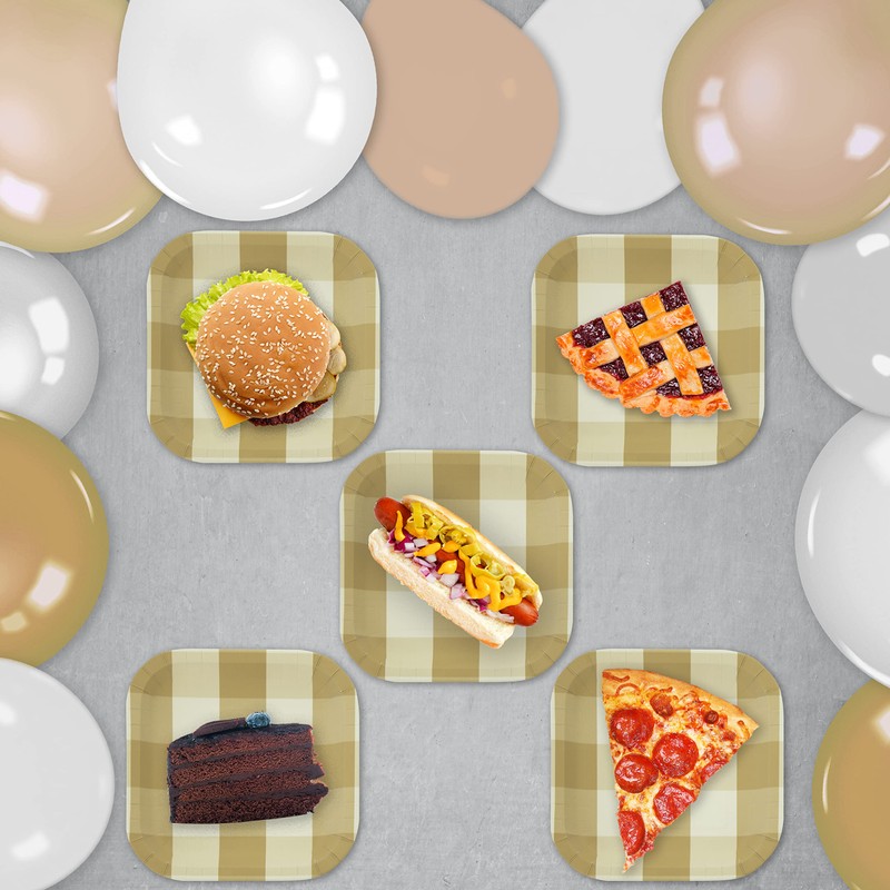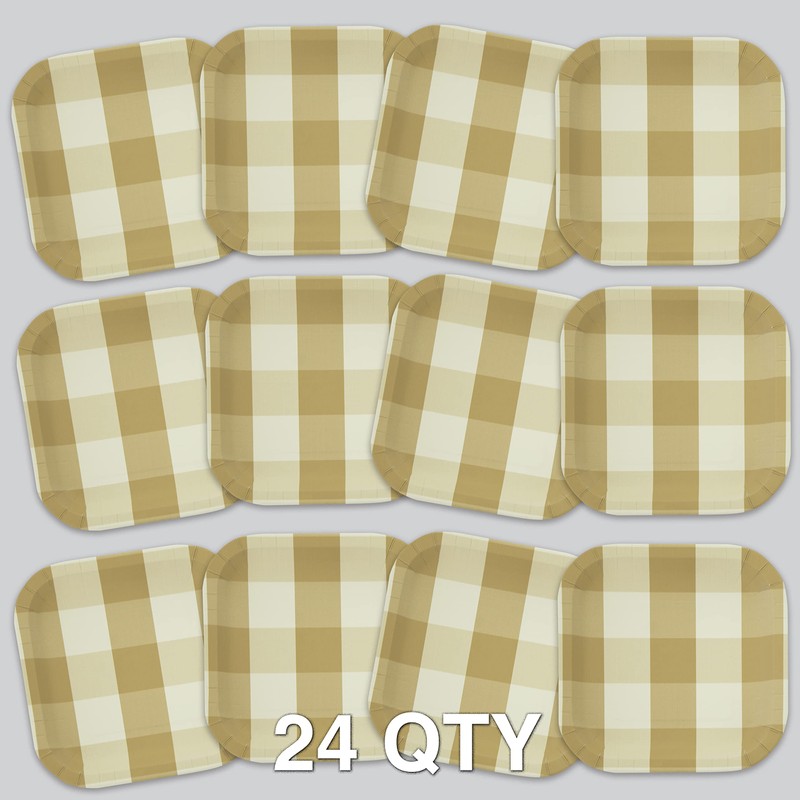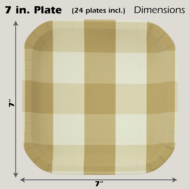 Havercamp Khaki & White Plaid 7 in. Dessert Plates (24 pcs.)! 24 Square, Heavy Duty, Paper Plates with Beautifully Printed Plaid Details, Coordinates with any Solid and the Classic Plaid Collection!