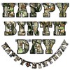 - NEXT CAMO PRINT - Each letter cutout is printed with a next camo pattern. The whole banner says "HAPPY BIRTHDAY" and it has an oak leaf on the middle.