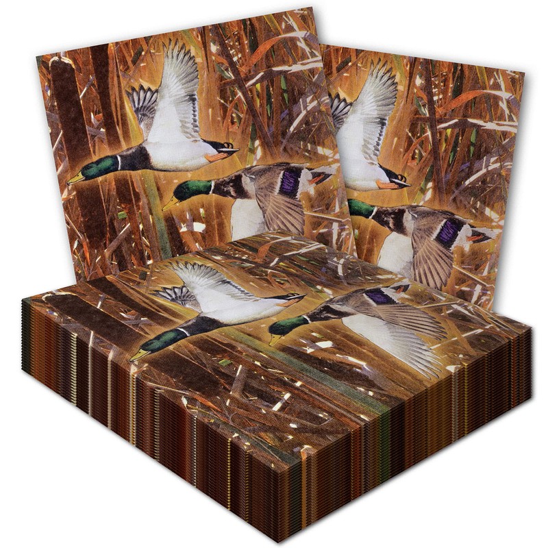 Havercamp Servilletas de almuerzo de pato (32 unidades) 32 servilletas de papel de caza de pato Mallard en auténtico pato de alta resolución y camuflaje. Dimensiones 6.5 x 6.5 pulgadas plegadas.