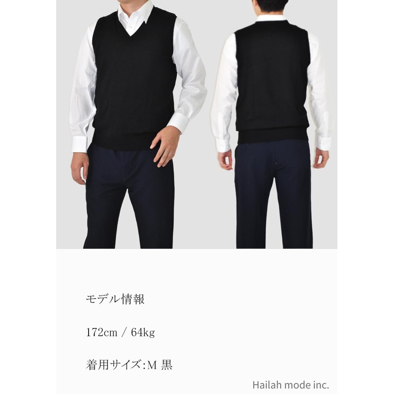 HAVILAH MODE, Thin but Warm Knit Vest, Washable, Wool, Business, Men's, Gilet Sweater, V-Neck, Large Size, Stretchable, Simple, Solid, Autumn and Winter, Black