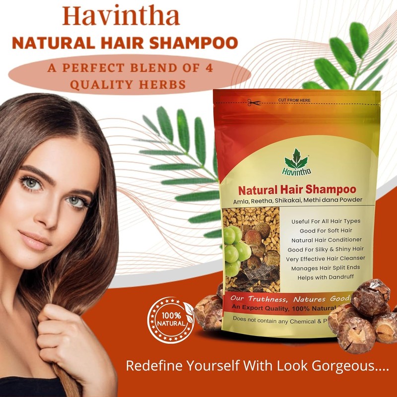 Havintha Havintha Natural Hair Shampoo with Amla, Reetha, Shikakai and Methi dana Powder for hair wash - 8 ounce | 0.5 pound | 227 grams (Pack of 1)