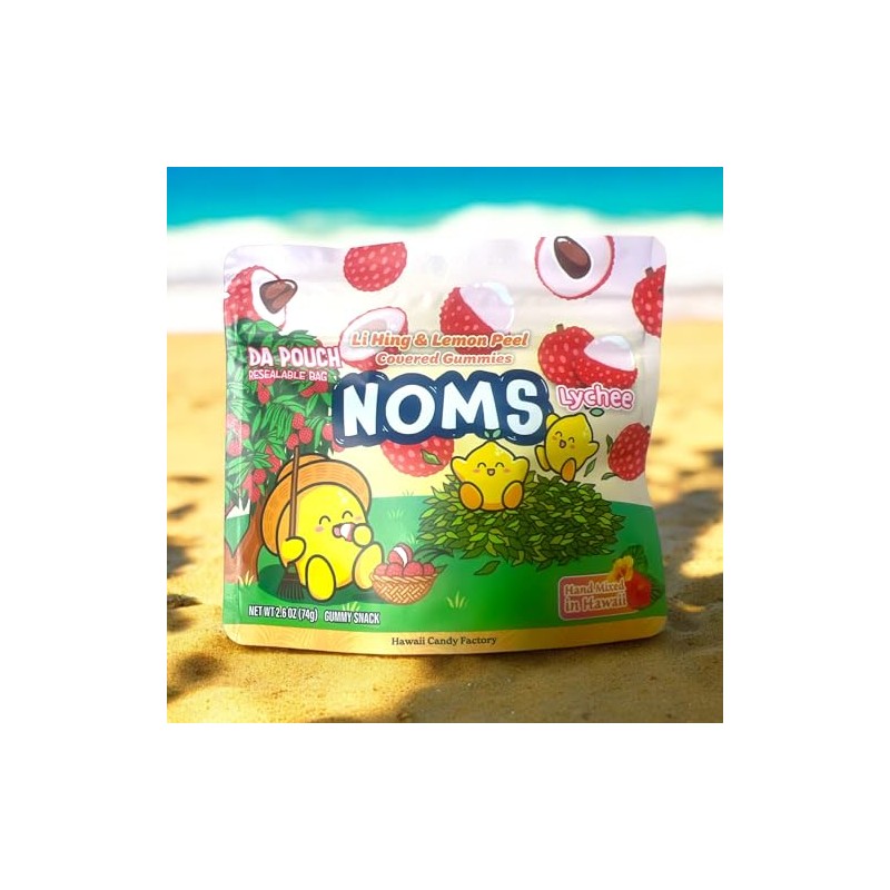 Hawaii Candy Factory NOMS Lychee, Li Ming & Lemon Peel Covered Gummies, 2.6 oz, Resealable Bag