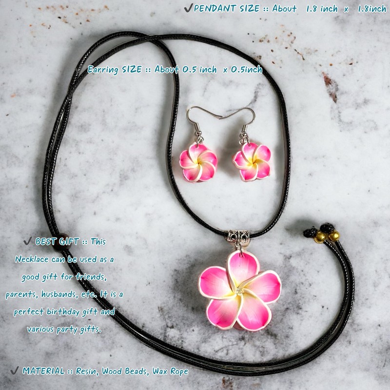 Hawaiian Flower Necklace Girl for Women Hawaii Jewelry Hawaiian Earrings Hawaii Plumeria Flowers Jewelry Fashion Flower Necklace Earrings (pink)