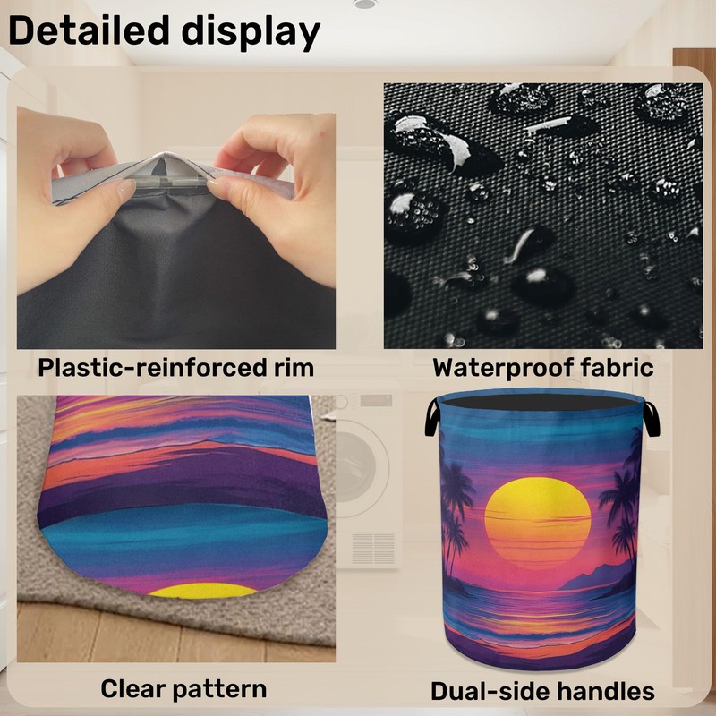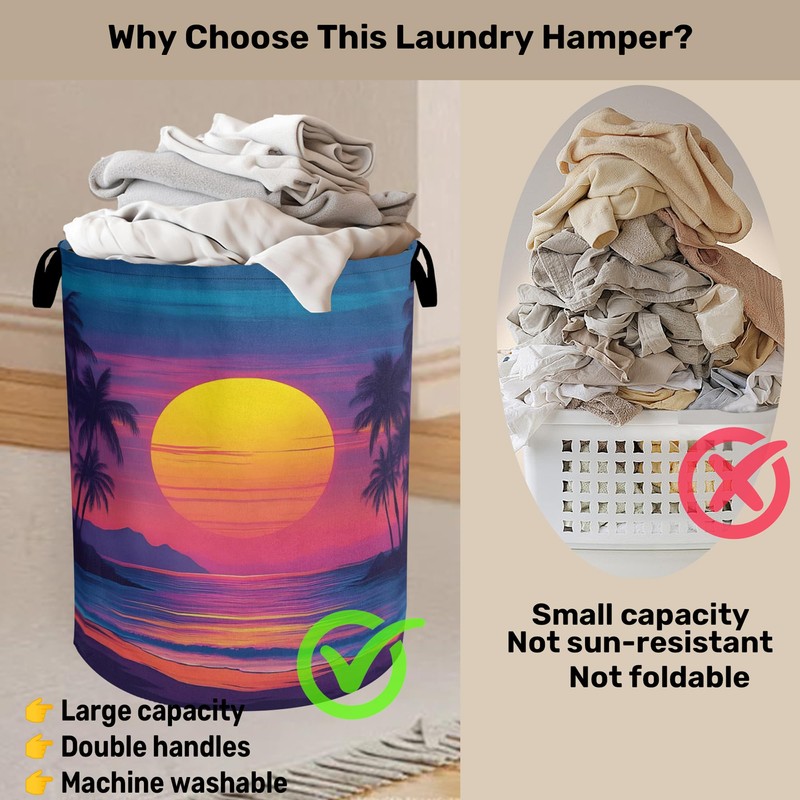 Hawaiian Sunset Foldable Laundry Hamper - Waterproof Fabric Storage Basket with Handles, Clothes Hampers for Laundry,Bedroom,Dorm