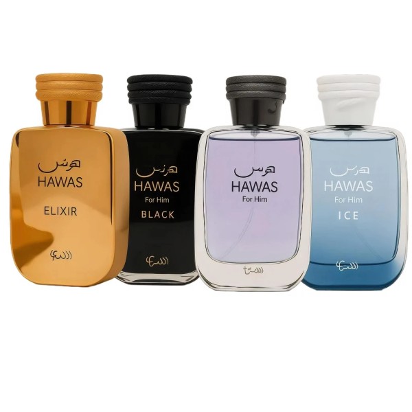 Hawas Men and Hawas Ice and Hawas Elixir and Black 4 Pcs Combo Pack 3.4 oz Edp