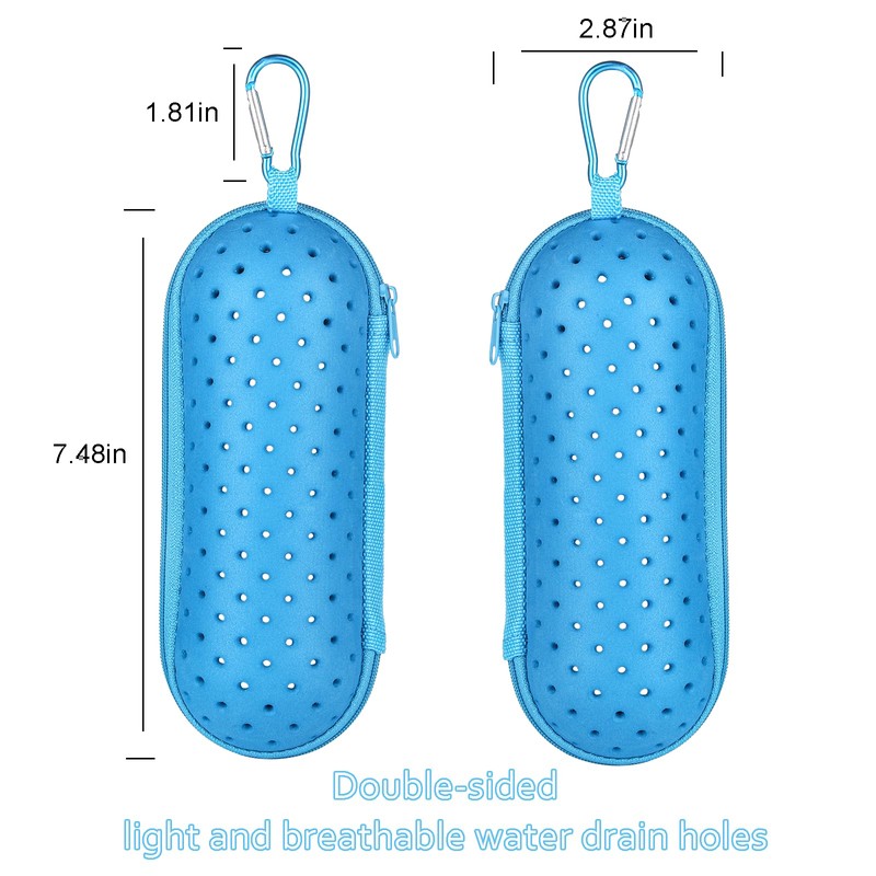Hawflu Swim Goggle Case For Swimming Goggles, Portable EVA Carrying Case with Drain Hole Zipper Sunglasses Bag with Clip (Light Blue)