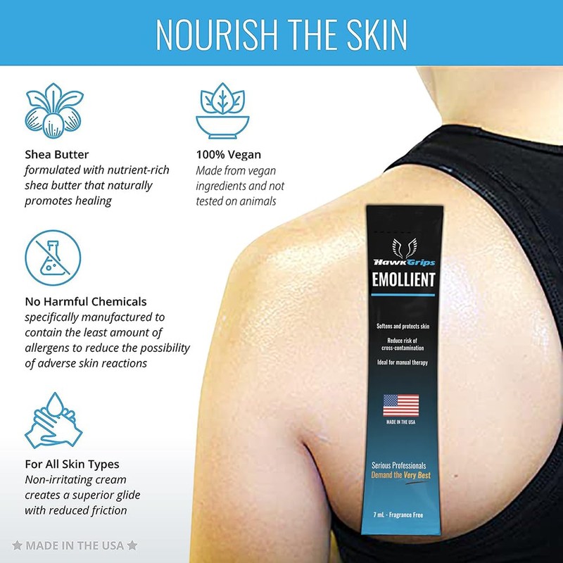- HawkGrips IASTM Emollient is made in the USA, is oil-based, and is specifically manufactured to contain the least amount of allergens to reduce the possibility of adverse skin reactions