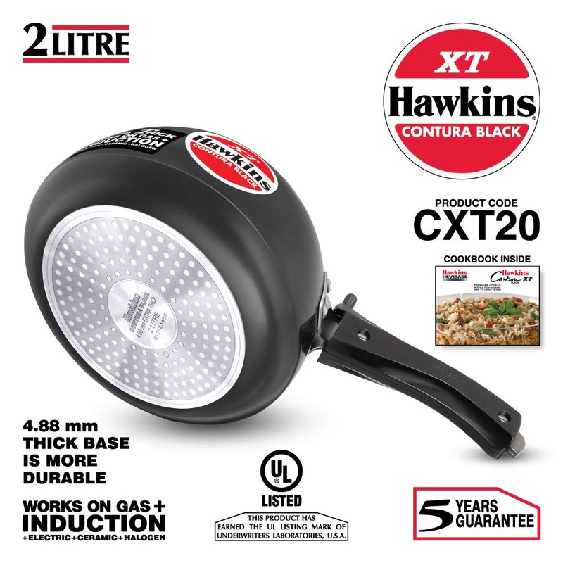 Hawkins Contura CXT20 Extra Thick Hard Anodised Pressure Cooker for Gas,Induction and Electric Stoves, 2 litres, Black
