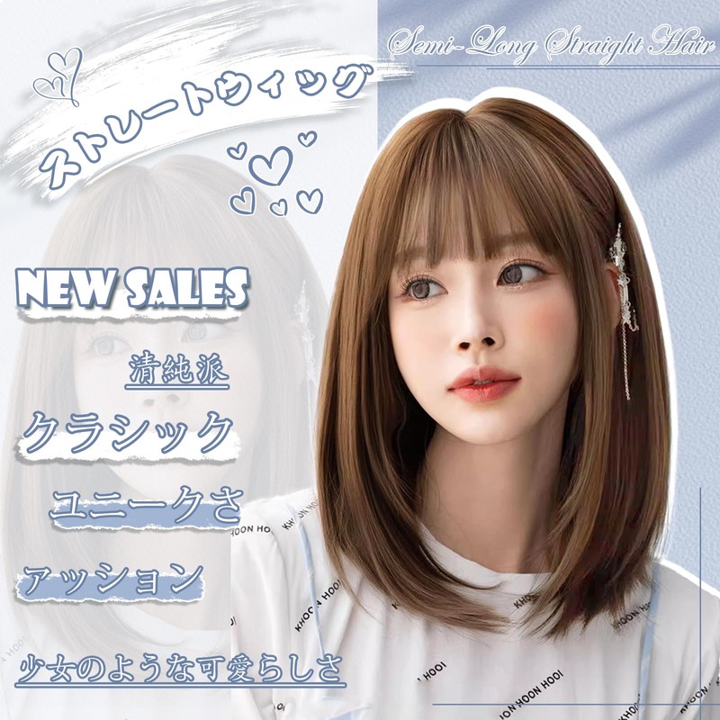 ミディアムストレートのフルウィッグが登場!さりげないオシャレを楽しむのに人気なレイヤースタイル!清潔感と好印象を与えるミディアムレイヤーは、 芸能人の間でも大人気のヘアスタイルです!