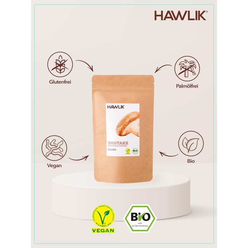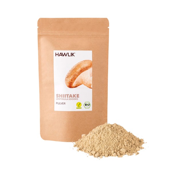 HAWLIK Vital Mushrooms Shiitake Powder - 100 g in Stand Bag - Ideal for Mixing - Natural Growing - Gentle Drying - Vegan