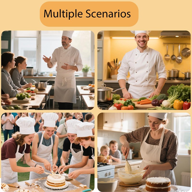 Whether in professional catering, baking at home or as an accessory for fancy dress, this 2-piece adjustable chef hat from is the perfect combination of comfort, function and style. As a head cap for cooking, cooking class or carnival costume, it is versatile. The chef hat is made of high-quality, lightweight polyester, which is breathable and skin-friendly. Even with long use, the white chef remains comfortable to wear without squeezing or slipping. The material wicks away moisture and is perfect for hot kitchen environments. Thanks to the flexible elastic band on the back, the hat adapts to any head size, ideal for men and women. Whether you are an experienced boss or a hobby chef, this chef's hat offers you reliable grip with every movement. Cleaning is very simple: machine washable, quick-drying and dimensionally stable. This makes it ideal for everyday use in restaurants, caterings or cooking schools. The men's chef hat carnival is also an excellent choice for events, shows or themed parties. The classic shape gives any outfit a professional yet charming look. Advantages at a glance: elastic, adjustable head cap for cooking, lightweight, breathable and comfortable to wear, chef hat suitable for men, women, professionals and amateurs. Machine washable and easy to clean. Also suitable for carnival, events, shows or costumes. Whether as a practical chef's hat for the kitchen, as an eye-catching chef hat carnival men or as a classic chef boss hat, with this set of 2 you are stylishly equipped in any kitchen and on any occasion.