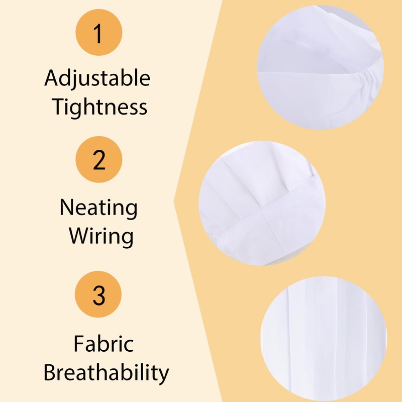 - Comfortable head cap for cooking with a secure fit, this chef's hat for men and women has an elastic band that guarantees a non-slip fit, ideal for the kitchen, carnival or barbecues.