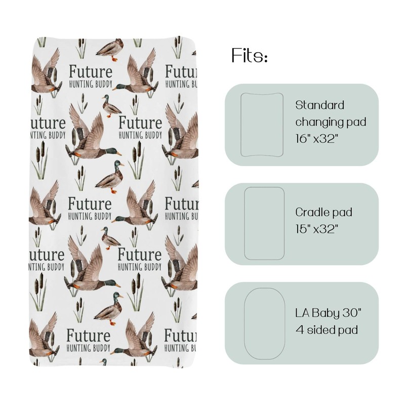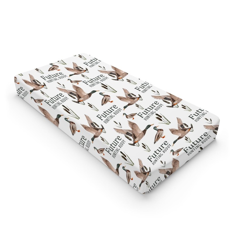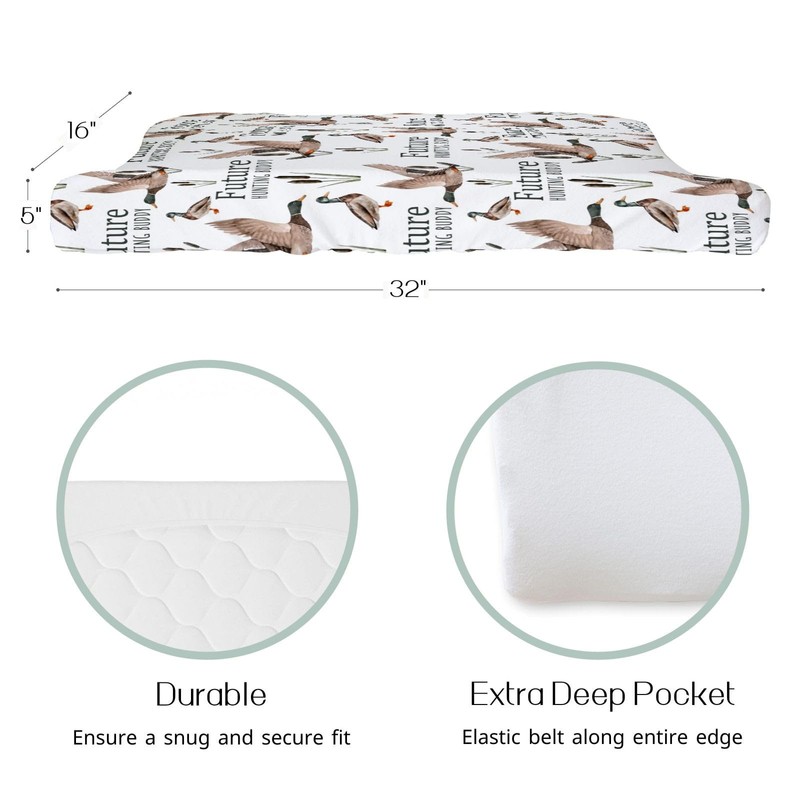 HawSkgFub Future Duck Hunting Buddy Changing Pad Cover for Baby Boy, Wild Mallard Hunter Diaper Change Table Covers, Soft Stretchy Breathable Safe Snug Fitted Changing Mat Sheets Fit 32"/34" x 16"