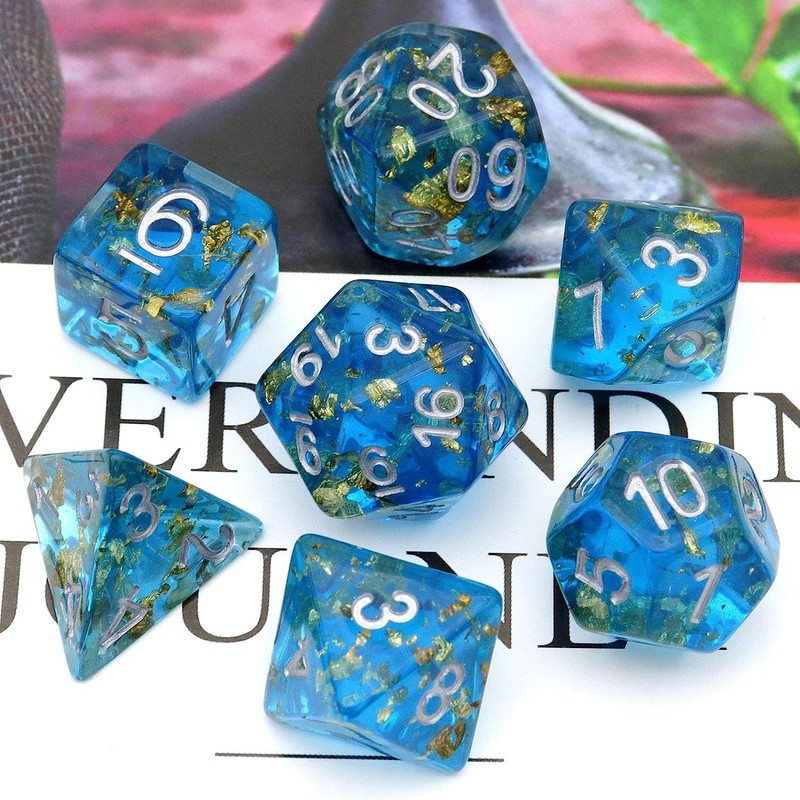 Haxtec DND Dice Set 7 Pieces Polyhedron Dice for Role Play Dice Games as Dungeons and Dragon Blue Gold Leaf/Foil Polyhedron Dice (Blue Gold Foil (Plankton))
