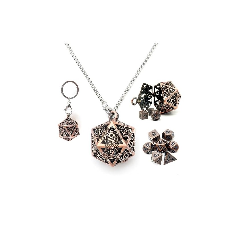 Haxtec Mini Metal DND Dice Set With Copper Hollow D20 Necklace Dice Case Anti...