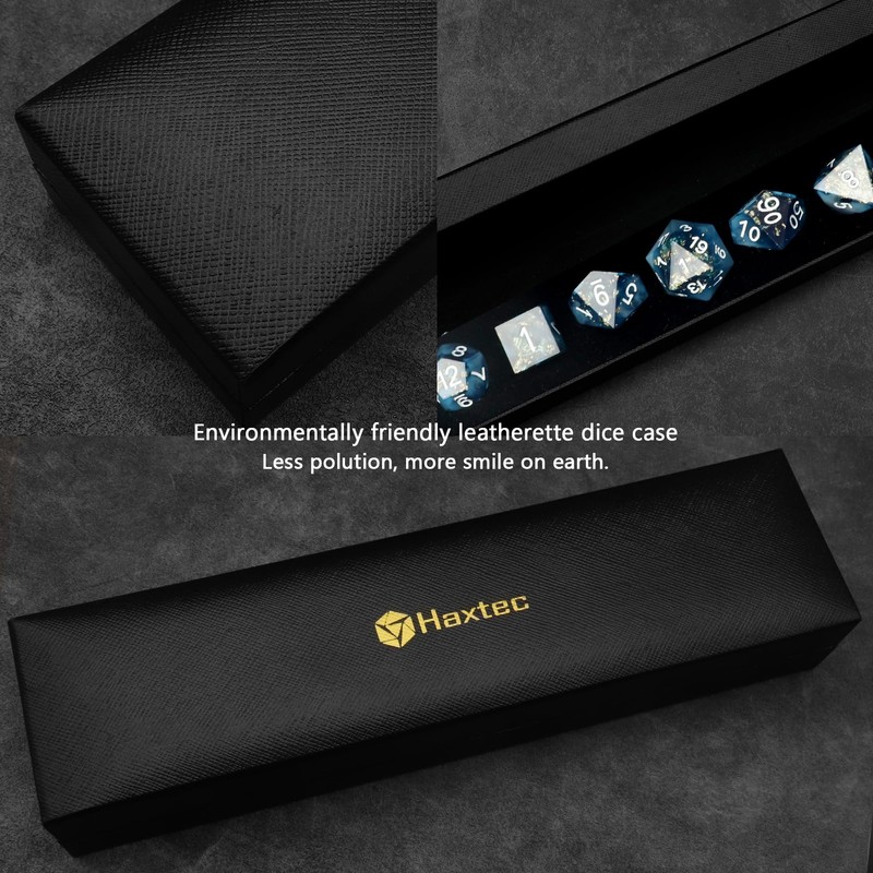 - Handmade Resin Dice: Haxtec original desin. All dice are crafted by our experienced resin aristists and hand picked to be visually perfect before shipping. Surfaces are polished to be mirror.
