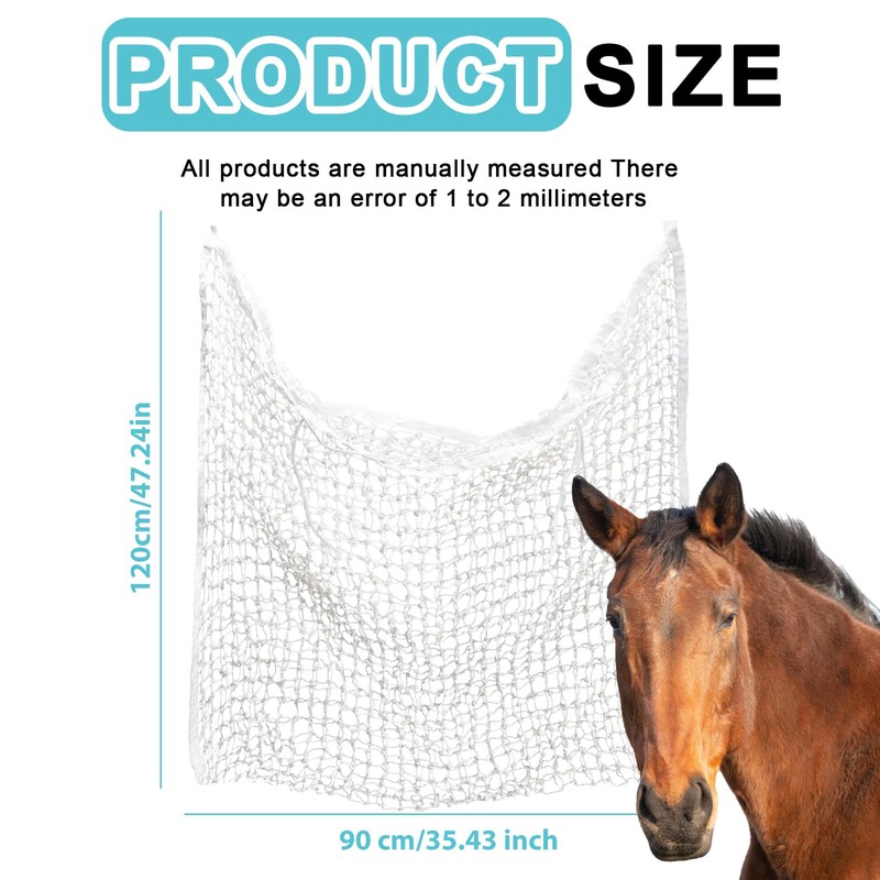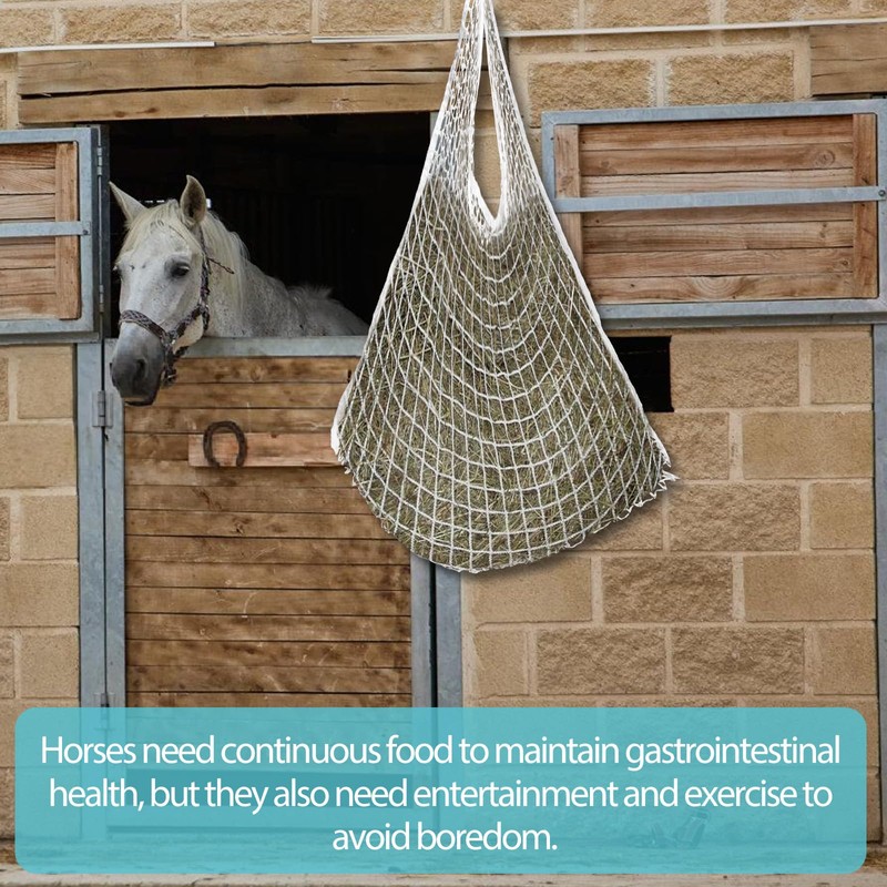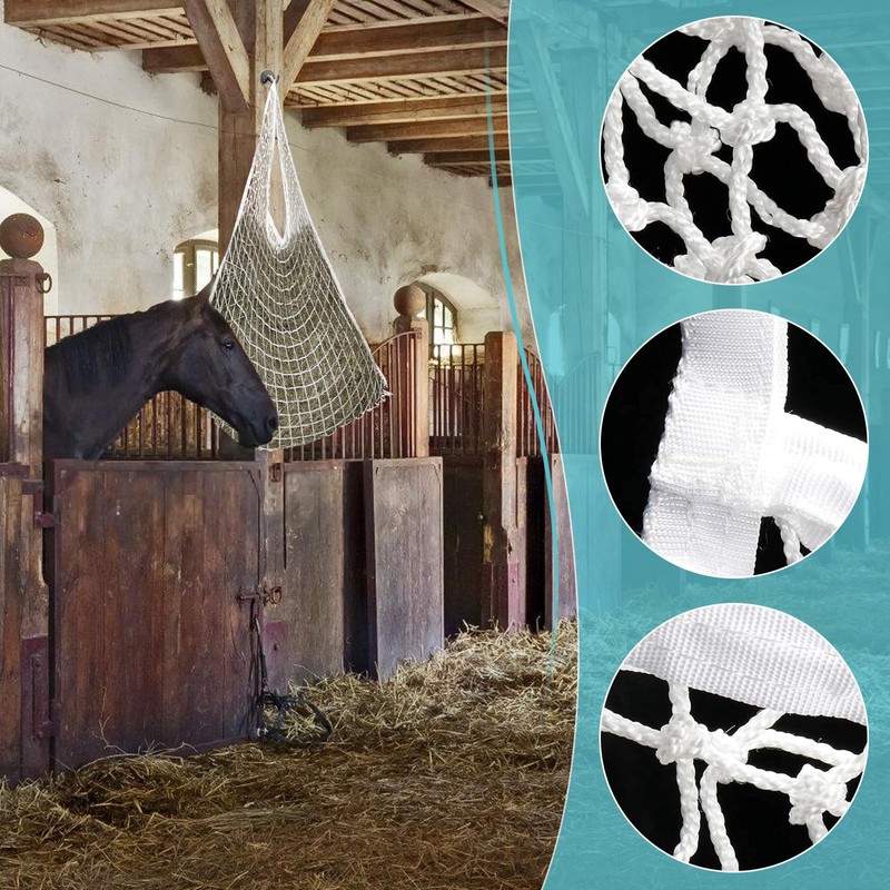 - Hay net for horses: hay bag thanks to the small meshes, the horse only gets very small portions from the net and is supplied in its natural behavior as a permanent eater.