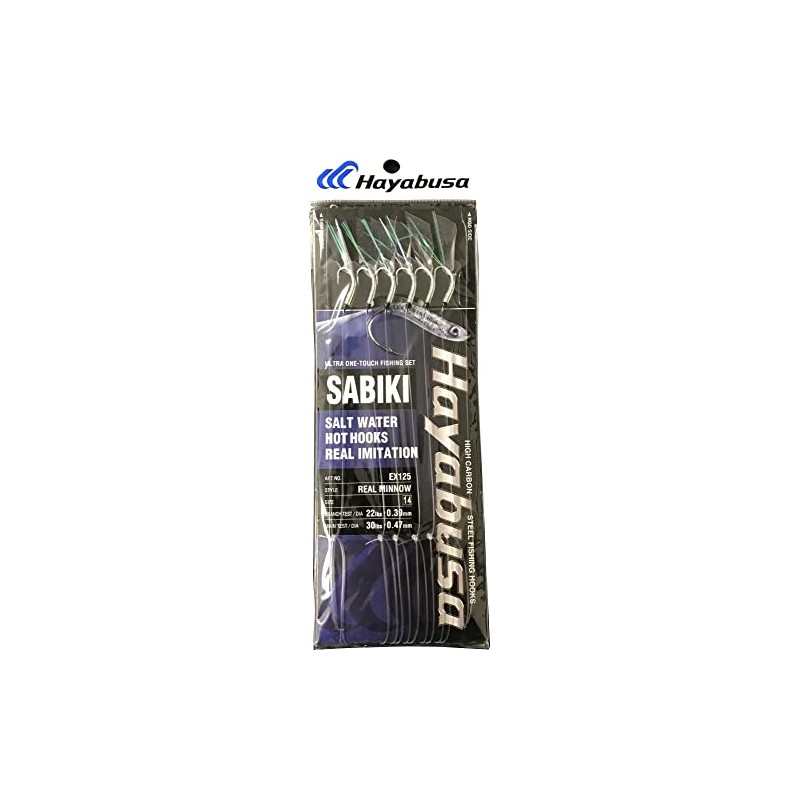 The Hayabusa EX125 UV Real Minnow Flasher Sabiki Rig is designed to match the natural look and movement of small baitfish. It features high carbon steel hooks with ultra-violet minnow skin flasher - perfect for fishing in low light and stained or murky water conditions. The Real Minnow Flasher will effectively catch and attract large and small bait fish, as well as target fish. Designed with extreme detail and Hayabusa Hooks known to be exceptionally strong and sharp.